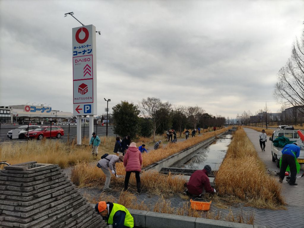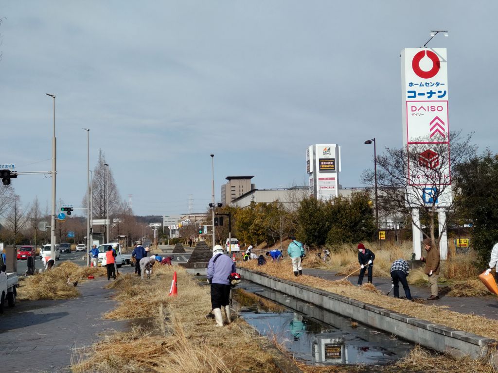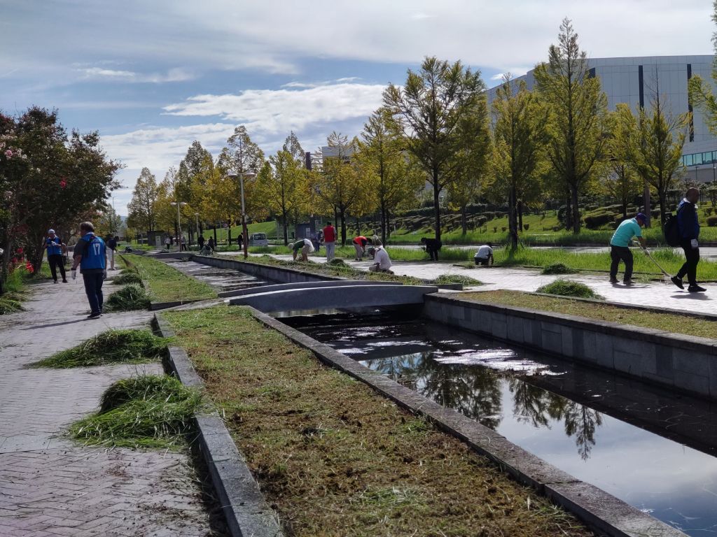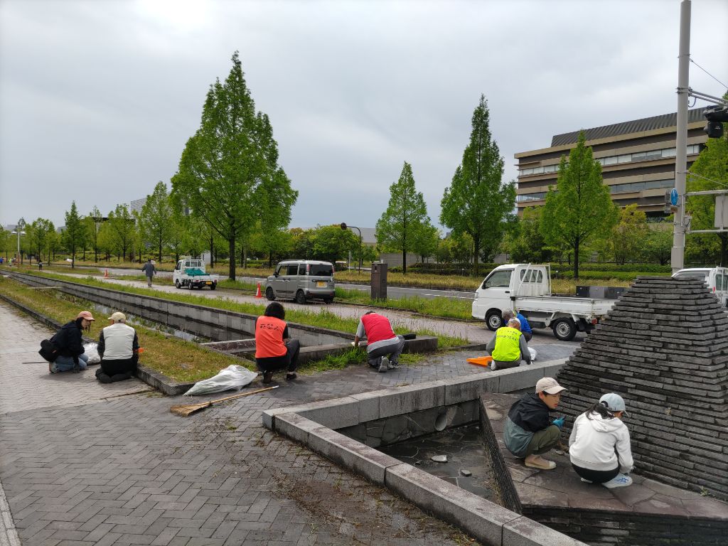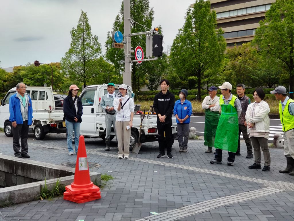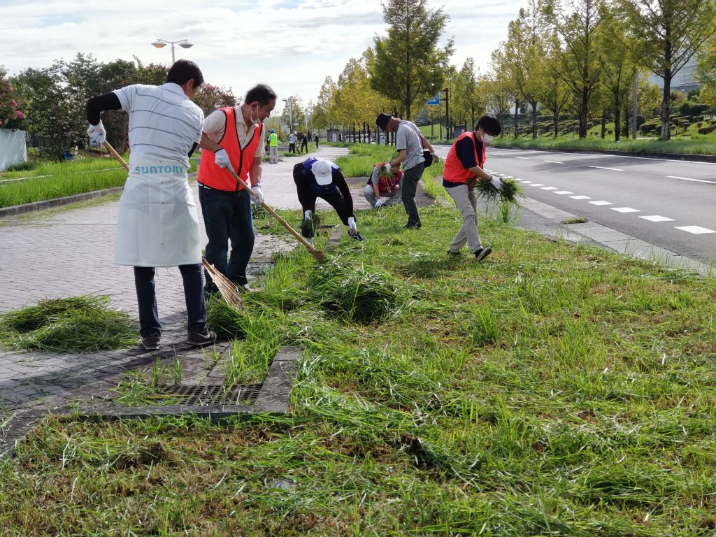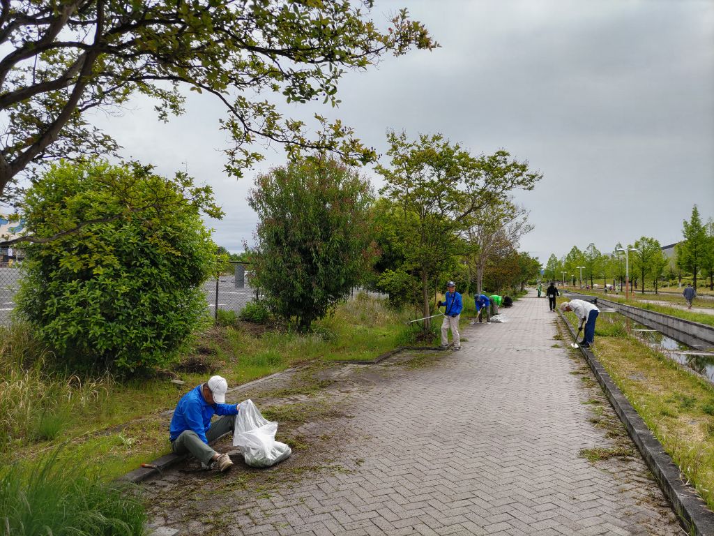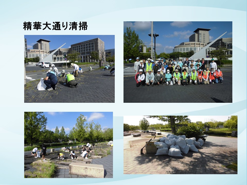 晴天に恵まれて精華大通歩道の清掃作業を約50名が集まり2時間行いました。