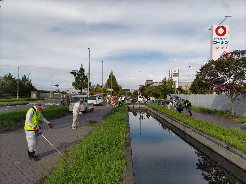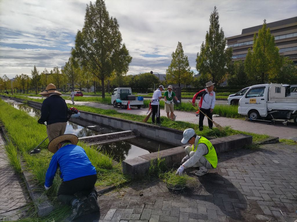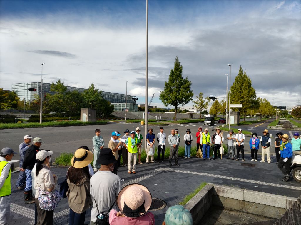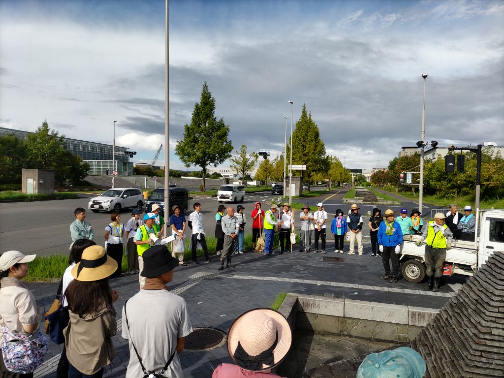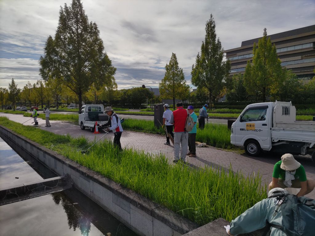 天気に恵まれて精華町、和束町、笠置町の町長様、精華町西中学校のバスケットボール部(25人)生徒さん等の住民、企業の参加者80人で8時~10時までけいはんなプラザ前からけいはんな公園の歩道の草刈りを行いました。暑い中、本当にご苦労様でした。刈り取った草はシルバー人材センターが引取堆肥として再利用されます。その様子が京都新聞の9月27日朝刊に記載されました。生徒さんの感想も素晴らしいです。